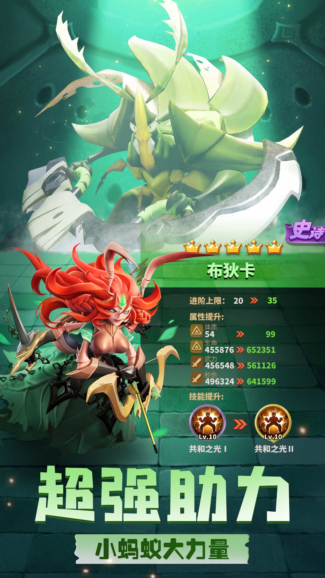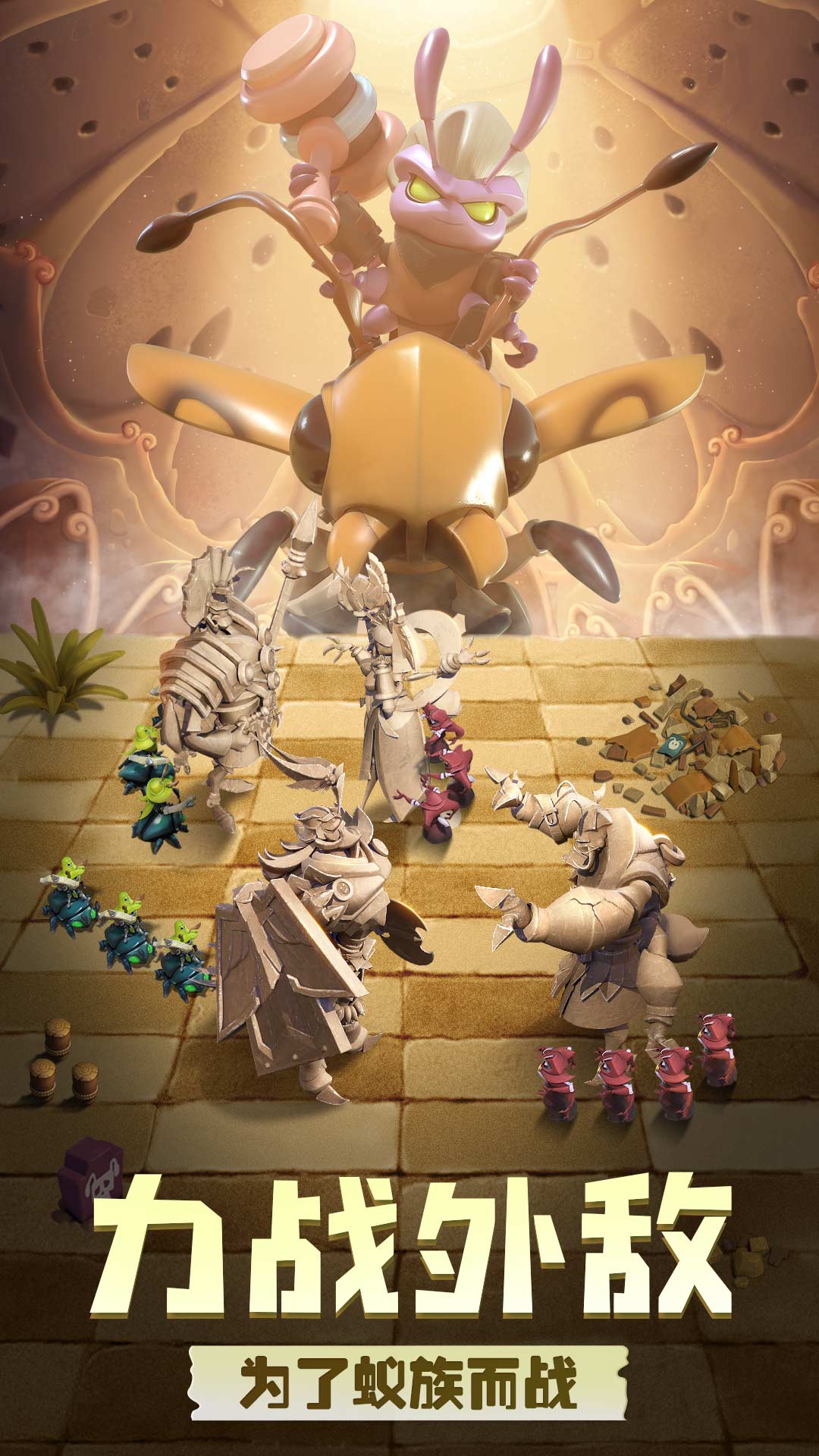 蚁族崛起你将作为蚁族统帅,建造你的专属蚂蚁王国。神机妙算的三国英雄、智勇双全的凯撒,还有数位出类拔萃的豪将,都等待你招募入队,成为蚁族中坚!通过资源囤积、城防修建、战力提升,将一方蚁穴壮大成为兵「蚁」强壮的王国城邦!与百万玩家结盟或是为敌,抵御强敌进攻,联手攻克城池,战无不胜,攻无不取,成为地下世界的霸主!